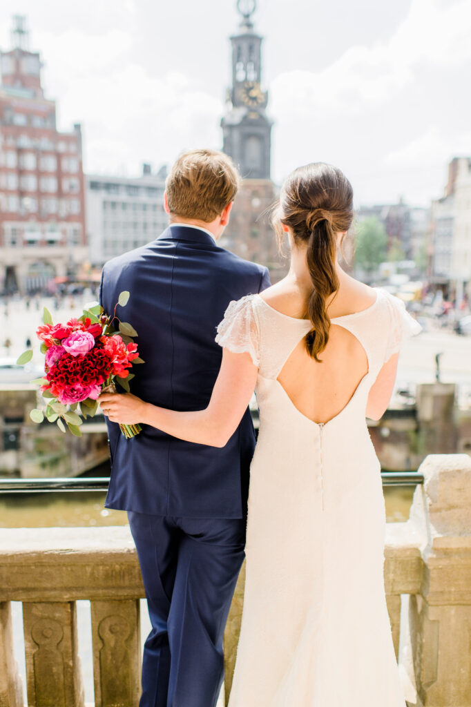 Editorial Amsterdam wedding: salon boat ceremony, iconic city portraits and intimate dinner — designed with refinement and warmth.Amsterdam Canal & City Wedding